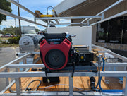 Featuring a Honda GX690 engine with a General Pump TSF2021 belt drive, this system delivers an impressive 8 GPM @ 3500 PSI, making it powerful enough for driveways, decks, fences, siding, and more. The aluminum tandem axle trailer design ensures lightweight strength, corrosion resistance, and smooth transport, while the integrated storage and hose management system keeps your setup organized and ready for work.